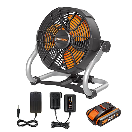 worx NITRO - Ventilateur de chantier hybride filaire et sans fil 20V - WX095 (soufflage puissant, rotation 360°, avec option de suspension, livré avec batterie et chargeur)