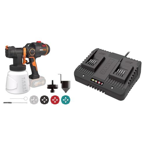 WORX Nitro - Pistolet à Peinture sans Fil Brushless 20V - WX020.9 & Chargeur Double 20 V Li-ION 2.0 A à 5Ah- WA3772