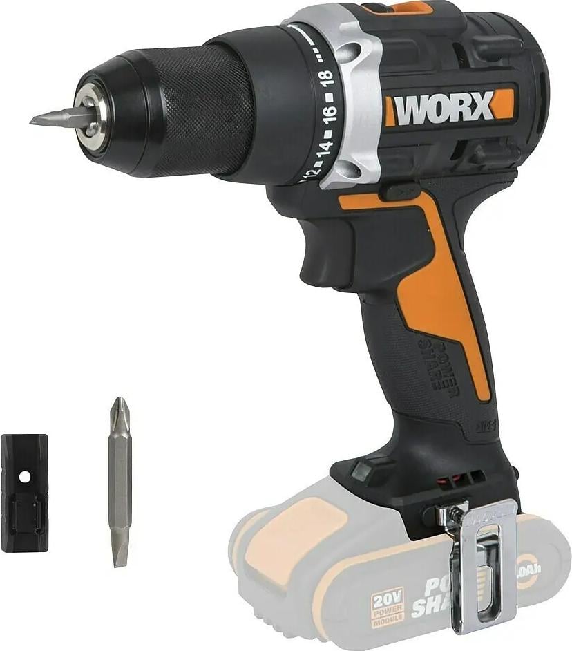 Perceuse à percussion sans fil WORX Nitro 18 V (20 V MAX), PowerShare, moteur sans balai, 60 Nm, mandrin 13 mm, vitesse variable, lumière LED, outil nu, WX352.9