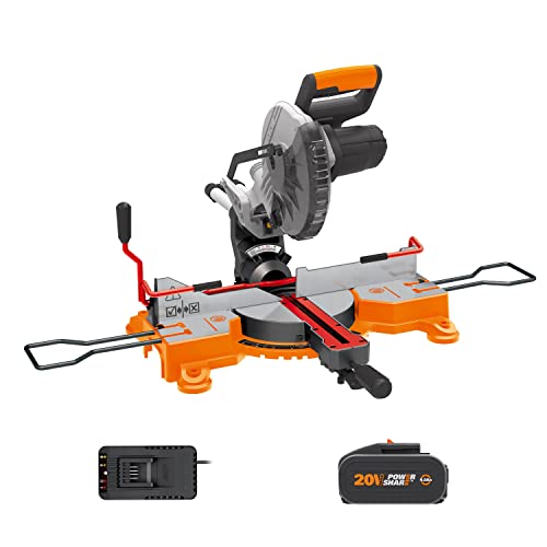 WORX NITRO - Scie à onglet sans fil 20V -2Ah - WX845 - capacité de coupe max 220 mm - biseau:45° (Livrée avec batterie et chargeur, compatible avec les batteries Worx PowerShare)