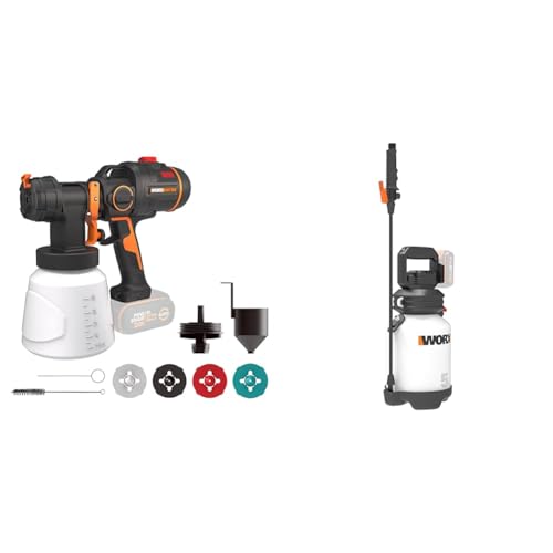 WORX Nitro - Pistolet à Peinture sans Fil Brushless 20V - WX020.9 & Pulvérisateur de Jardin sans Fil 20V - 5 litres - WG829E.9