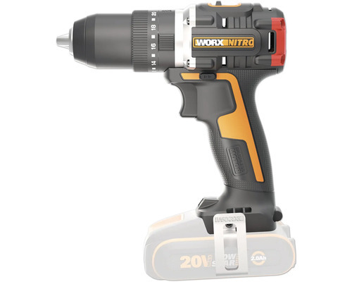 WORX - Perceuse visseuse sans fil Brushless 20V-2Ah - WX175.9 - 60Nm ⌀13mm (Livrée sans batterie ni chargeur, 2 vitesses, lumière LED intégrée)