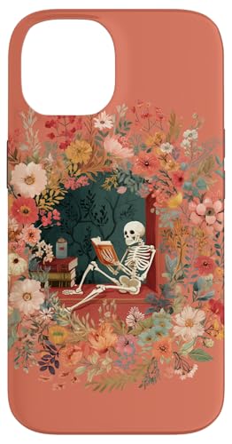 Skeleton Reading Book Floral Wreath Boho Botanical Art Coque pour iPhone 14