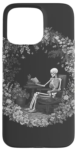 Skeleton Reading Book Floral Wreath Boho Botanical Art Coque pour iPhone 15 Pro Max