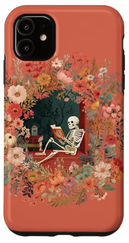 Skeleton Reading Book Floral Wreath Boho Botanical Art Coque pour iPhone 11
