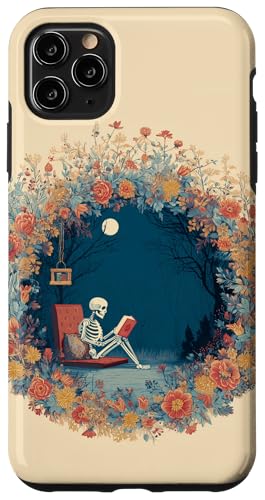 Skeleton Reading Book Floral Wreath Boho Botanical Flower Coque pour iPhone 11 Pro Max