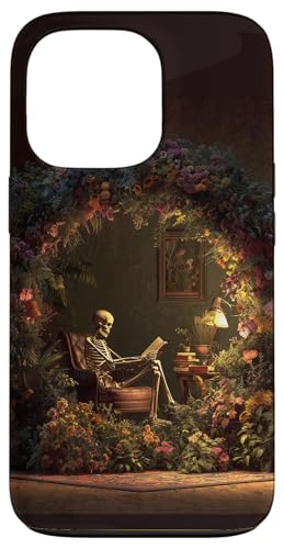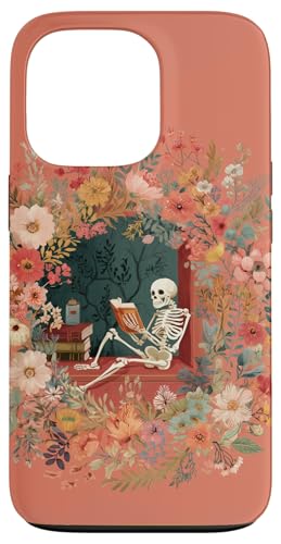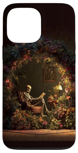 Skeleton Reading Book Floral Wreath Boho Botanical Art Coque pour iPhone 13 Pro Max