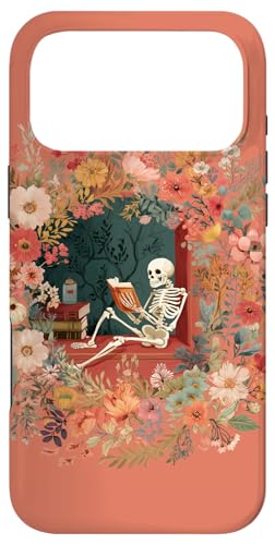 Skeleton Reading Book Floral Wreath Boho Botanical Art Coque pour iPhone 17 Pro