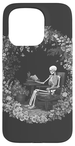 Skeleton Reading Book Floral Wreath Boho Botanical Art Coque pour iPhone 15 Pro