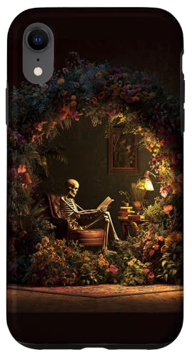 Skeleton Reading Book Floral Wreath Boho Botanical Art Coque pour iPhone XR