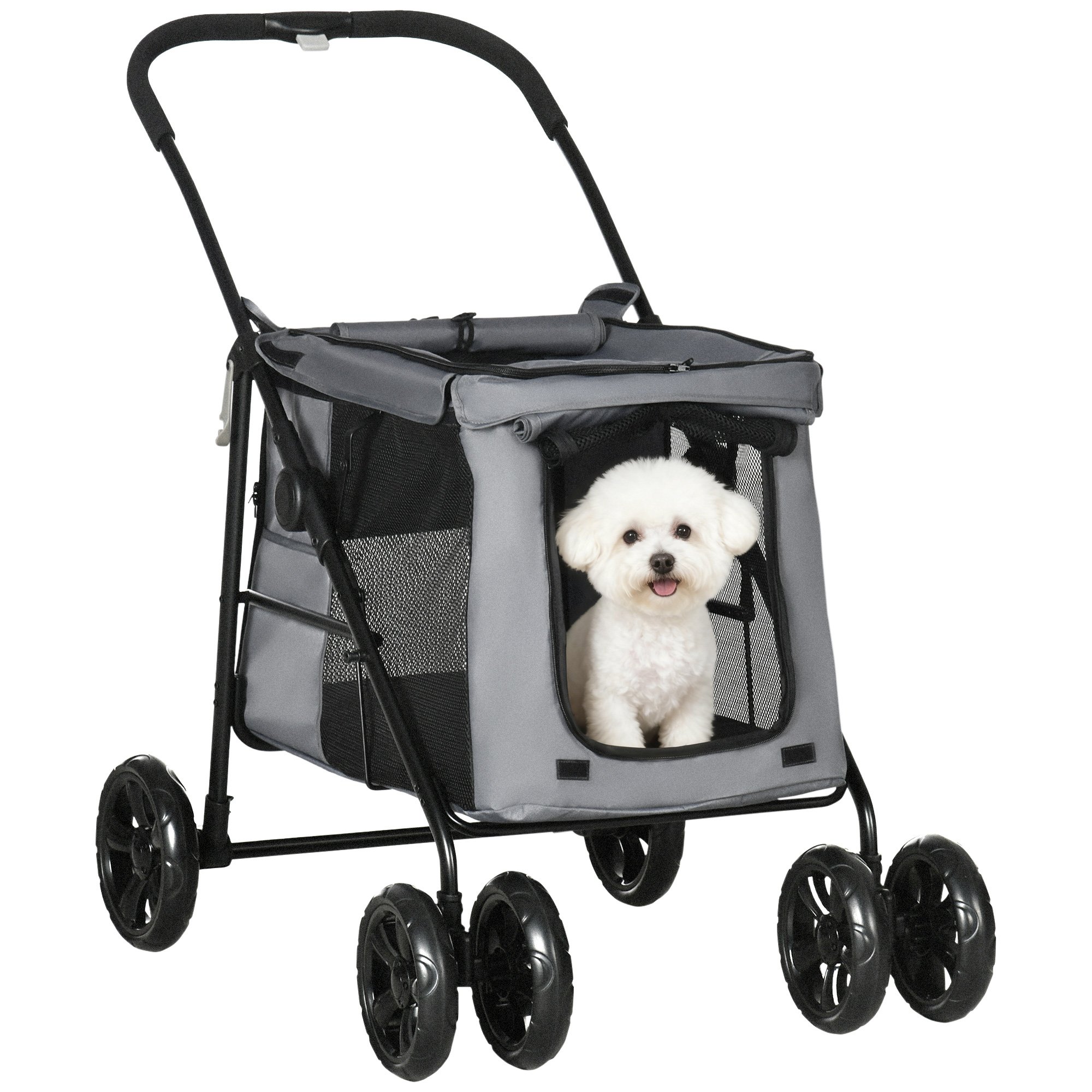 PawHut Poussette pliable animaux chien chat coussin inclus roues avec frein tissu 600D Oxford 102 x 62 x 105 cm gris Aosom France