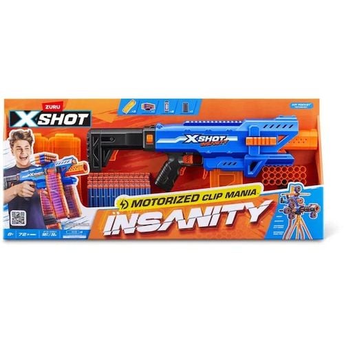 Xshot Insanity – Blaster à Clip motorisé (72 fléchettes), Technologie de Poche d'air, Rangement de fléchettes, Jouet d'extérieur pour garçons et Filles, Adolescents et Adultes