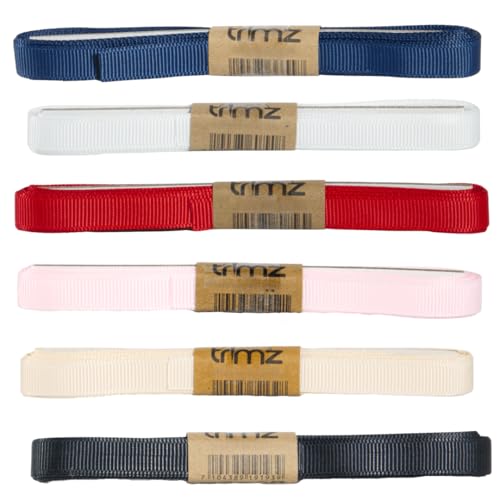 Trimz Ruban gros-grain Essentials Pack – 15 mm x 3 m – Rouge, bleu marine, noir, ivoire, rose, blanc