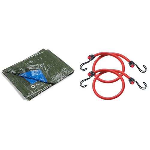 kippen 6064AS Bâche à œillets Bicolore avec Grammage 90 g/m² Taille 2 x 3 (6 m²) & Master Lock 3020EURDAT Tendeurs avec Crochet [Pack de 2 Tendeurs] [Crochet Inversé] - Idéal pour Le Transport