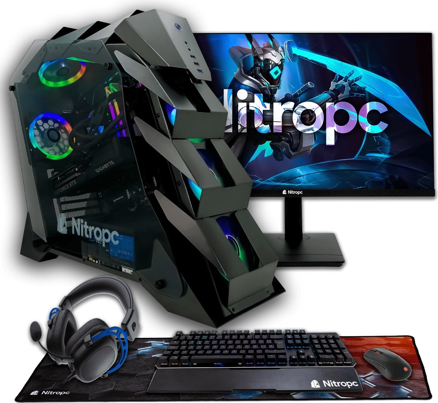 NitroPC - Pack Gold Plus v2 | PC Gamer Complet (AMD Ryzen 7 5800X 3.8GHz, RTX 4060 8Go, 32Go RAM, M.2 2To, Windows 11, RGB | WiFi, écran 24", Clavier, Souris, Casque, Ordinateur Gaming (Noir)