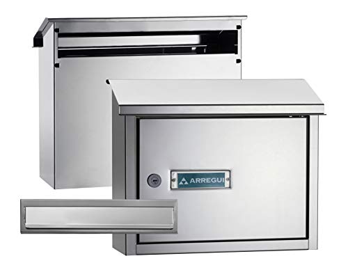 ARREGUI V4087 Pack Bouche d'entrée + Boîte aux lettre en acier inoxydable pour porte, mur et portail, Fente de 32,5 x 3 cm, Taille M (Courrier A4) Résistant aux intempéries, Installation facile, Inox