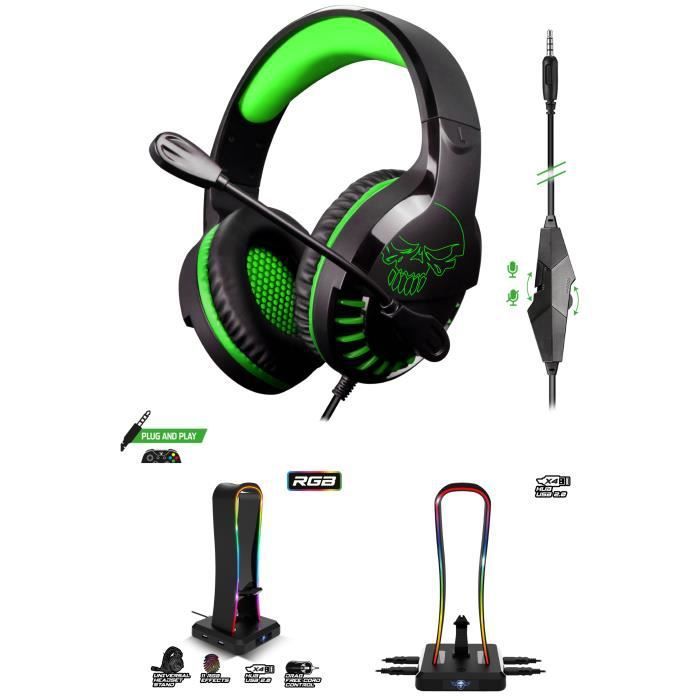 CASQUE GAMER XBOX ONE X/S RGB + Support Casque Gaming RGB Porte Casque Gamer Multifonctions 11 Effets Lumineux Pour PC/PS4/Xbox ONE