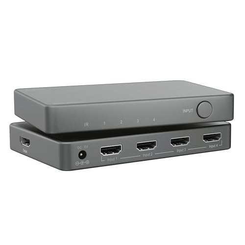 Kinivo Commutateur HDMI 8K (8K 60Hz, 4 en 1 Sortie, concentrateur HDMI 2.1 48 Gbit/s, commutateur Ultra HD, HDR10+, Dolby Atmos) – Compatible avec HDTV, Nintendo Switch 2, PS5, Xbox, Apple TV