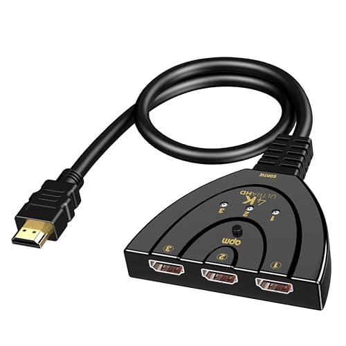 GANA Multiprise HDMI Switch 3 Entrée 1 Sortie Commutateur HDMI 4K avec Câble Haute Vitesse, Compatible avec TV, Roku, Fire TV Stick, Xbox, PS5, PS4, Blu-Ray, PC