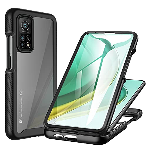 CENHUFO Coque Xiaomi Mi 10T 5G, Coque Xiaomi Mi 10T Pro 5G Antichoc Housse avec Protection d'écran, 360 Degrés Protégé Téléphone Robuste Double Face Transparent Case Portable Intégrale Etui - Noir