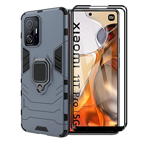 ESTH® Coque pour Xiaomi 11T Pro 5G/Xiaomi 11T 5G avec 2 Pièces Protection Écran, 360° Support Rotatif [Fonctionne avec Support De Voiture Magnétique] Étui Housse, Bleu