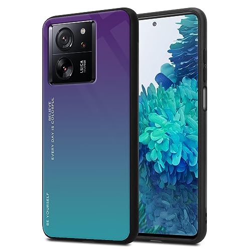 PEIYE Coque pour Xiaomi 13T / Xiaomi 13T Pro, Housse Étui avec Cadre en Silicone Souple et Panneau Arrière en Verre Trempé Intégré, Couleur Dégradée, Case Cover Bumper Antichoc, 04