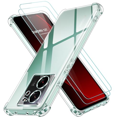 ivoler 3 en 1 Coque pour Xiaomi 13T / Xiaomi 13T Pro avec 2 Pièces Verre Trempé, Ultra Transparent Étui de Protection en Silicone Antichoc, Souple TPU Anti-Rayures Bumper Housse