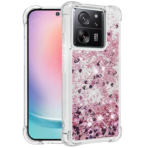 Yarxiawin Compatible pour Coque Xiaomi 13T Pro 5G Transparente Glitter Silicone Case Aesthetic, Bling Liquide Sables Mouvants Housse Etui Xiaomi 13T 5G Paillette Cover Antichoc Protection (Or Rose)