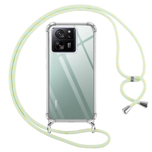 Pnakqil Coque pour Xiaomi 13T/Xiaomi 13T Pro 5G avec Cordon, Transparente Silicone Housse avec Réglable de Collier Anti-Chute Etui pour Xiaomi 13T Pro 5G, Ètuis à Bandoulière 6.67", Vert