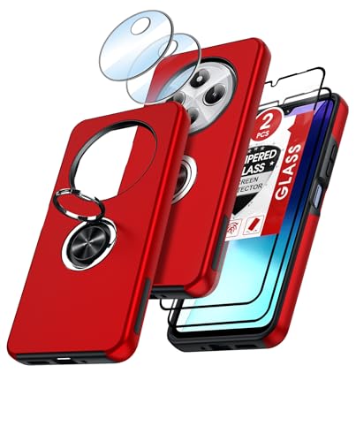 LeYi Coque pour Xiaomi Redmi 14C/14 C avec 2 Verre Trempé Vitre Protection, 2 Protection Camera et Anneau Telephone Invisible, Militaire PC et TPU Etui Antichoc Housse pour Redmi 14C - Rouge