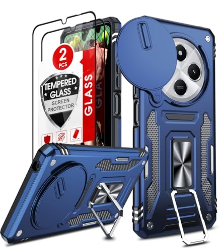 LeYi Coque pour Xiaomi Redmi 14C/14 C 4G Antichoc avec Protection Caméra Coulissante,2*Verre Trempé,Étui de PC Dur et TPU Silicone Militaire Anti-Rayures Coque Anneau,Bleu