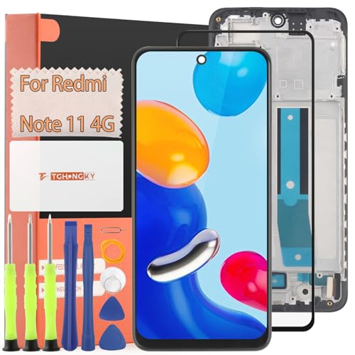 TGHongKy Écran LCD pour Xiaomi Redmi Note 11 2201117ty Écran de Rechange pour Redmi Note 11 Remplacement LCD Tactile avec Film de Protection D'écran et Outils (Noir avec Cadre)