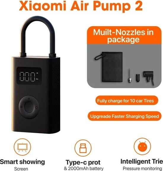Xiaomi-Mini pompe à air portable 2 ata jia, compresseur d'air électrique, type-c, gonfleur multi-outils pour voiture automobile, 2000mAh, 5V