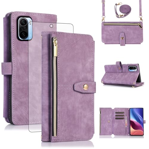 Asuwish Coque pour Xiaomi Poco F3/Mi 11i 5G Portefeuille avec Verre Trempé et Cordon Porte Carte Chaine PU Cuir à Clapet Étui Housse Support Mi11i/11X Pro/Redmi K40 Plus Téléphone Case Femme Violet