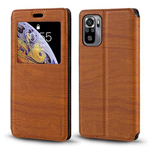 Shantime Étui Rabat Cuir Fenêtre Compatible avec Xiaomi Poco M5S, Élégant Affichage Transparent, Fermeture Magnétique Cachée Porte-Carte(Marron)