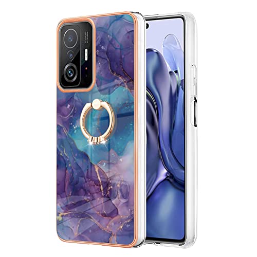 VQWQ Silicone Coque Compatible with Xiaomi Mi 11T Pro - Coque avec Anneau en Métal Pailleté de Luxe Marbre Peinte Case TPU Antichoc Slim Cover pour Xiaomi Mi 11T / Xiaomi Mi 11T Pro [Ring] -Violet