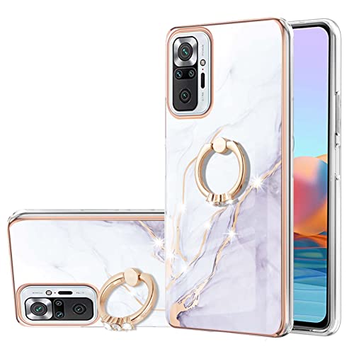Silicone Coque Compatible with Xiaomi Redmi Note 10 Pro - Coque avec Anneau en Métal Pailleté de Marbre Peinte Case TPU Antichoc Slim Cover pour Redmi Note 10 Pro Max/Redmi Note 10 Pro[Ring] -Blanc