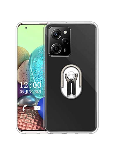 Sunrive Coque Compatible avec Xiaomi Poco X5 Pro 5G, 360 degrés Support Téléphone Voiture Bague Rotation Ring Stand Holder Étui Silicone Transparent Housse Protecteur Back Case(argenté)