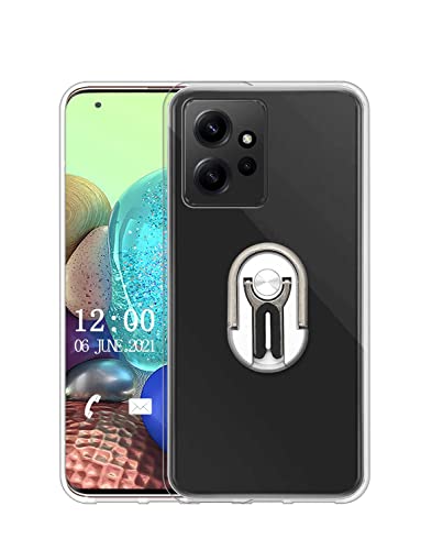Sunrive Coque Compatible avec Xiaomi Redmi Note 12 Pro 5G, 360 degrés Support Téléphone Voiture Bague Rotation Ring Stand Holder Étui Silicone Transparent Housse Protecteur Back Case(argenté)