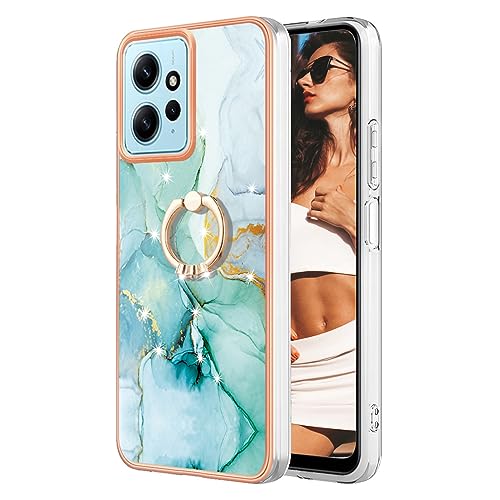 Ysnzaq Marbre Silicone TPU Coque pour Xiaomi Redmi Note 12 4G 6.67"(Not 4G), Ultra Fine Mince Léger Antichoc Case avec 360° Ring Stand Élégante Housse pour Xiaomi Redmi Note 12 4G.YZ Green