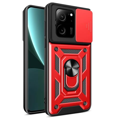 HONLEN Coque Convient pour Xiaomi MI 13T / Xiaomi MI 13T Pro (6.67" inches), Étui PC Armor Ring Stand avec Base Magnétique - Rouge