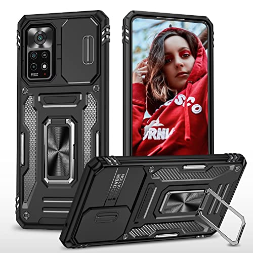 NEINEI Coque pour Xiaomi Poco X4 Pro 5G,Etui de Protection la Caméra en PC Dur avec [Magnétique Ring Support][Silicone Bumper],Housse de Militaire Renforcée Défense Case,Noir