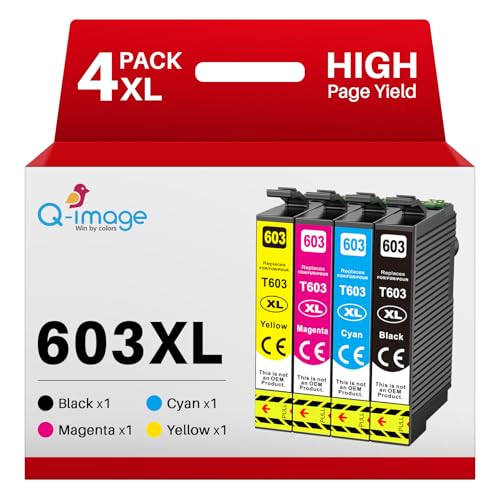 Q-image 603 XL Cartouche d'encre Compatible pour Cartouche 603 603XL Compatible avec Expression Home XP-2100 XP-2105 XP-3100 XP-4100 XP-4105 Workforce WF-2830 WF-2840 (4-Pack)
