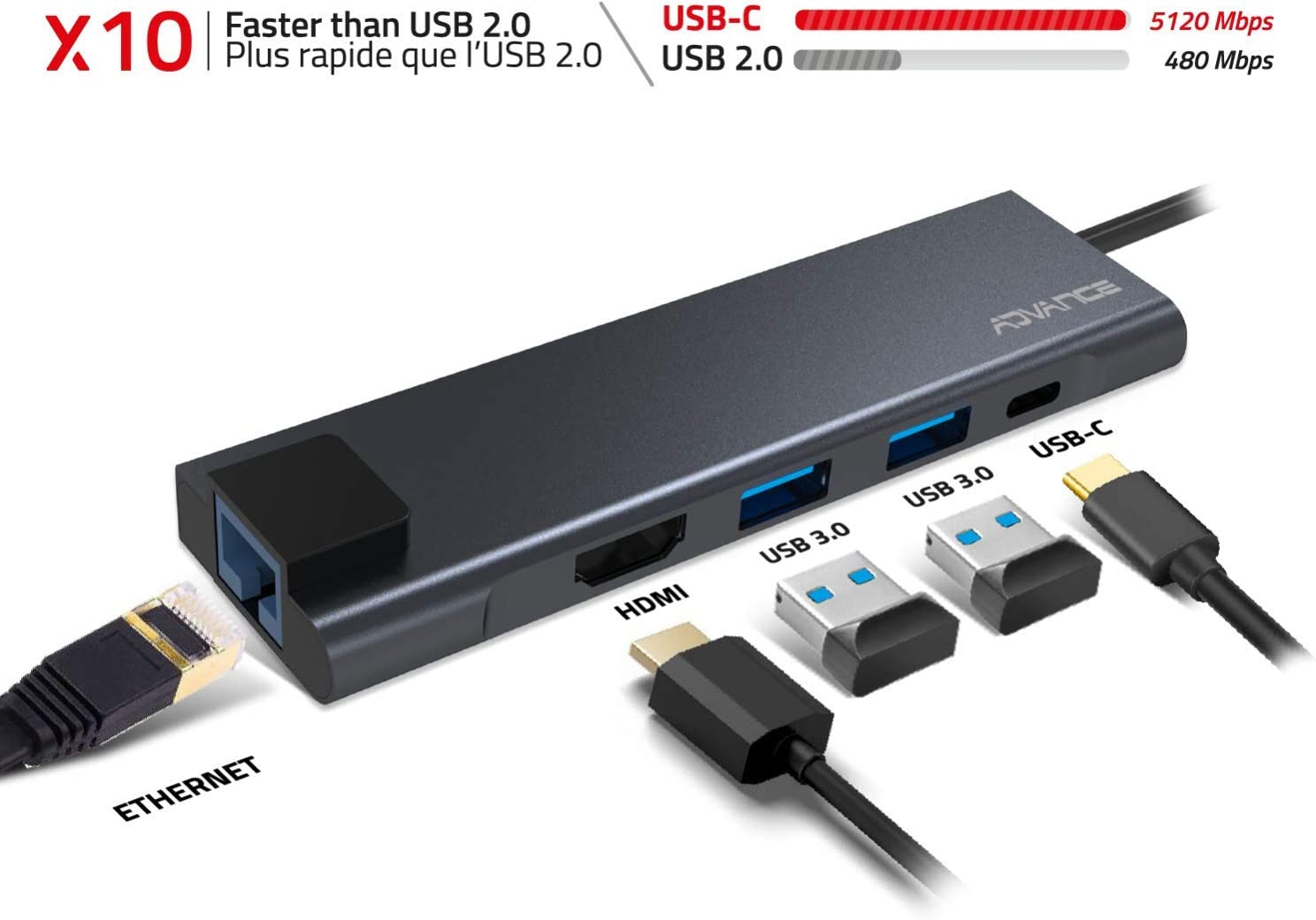 HUB 5 en 1 - 2x USB 3.0 + USB-C + HDMI + Ethernet - XPAND SMART USB-C - PC /MAC