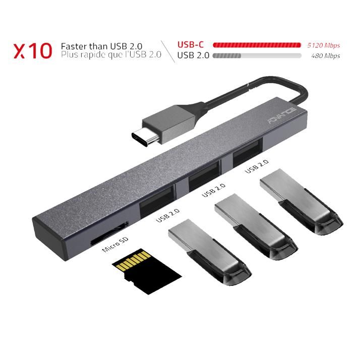 Hub USB 2.0 Type C Advance Xpand Smart - 3 ports Type A + lecteur Micro-SD