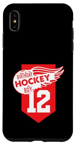 Joyeux 12e Anniversaire garçon Couleur Rouge sur Le thème du Hockey sur Glace Coque pour iPhone XS Max