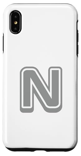 Lettre rétro grasse Gris – N – Contour – Alphabet Coque pour iPhone XS Max