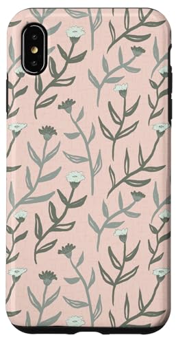 Fleurs et Feuilles peintes en Rose et Gris, Motif botanique Coque pour iPhone XS Max