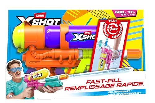 XSHOT Water Fast Fill 80s Super Splash Pistolet à Eau (Violet) de ZURU – Style Vintage avec Technologie Fast Fill, Portée 10m et Réservoir 750ml, Jouet d'Été Extérieur pour Enfants 6+