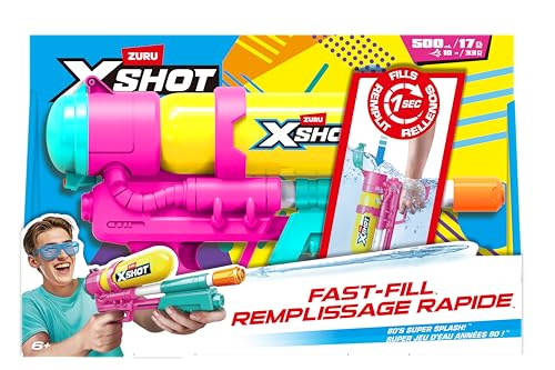 XSHOT Water Fast Fill 80s Super Splash Pistolet à Eau (Jaune) de ZURU – Style Vintage avec Technologie Fast Fill, Portée 10m et Réservoir 750ml, Jouet d'Été Extérieur pour Enfants 6+, Jardin & Piscine